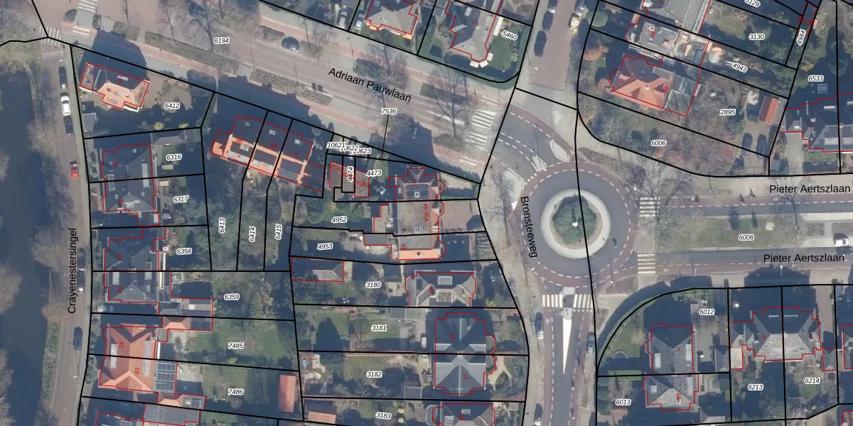 Het perceel waarop Bronsteeweg 45 staat heeft een oppervlakte van 368 m². Dit is een groot perceel. De perceeloppervlakte wordt geregistreerd door het Kadaster. Gedetailleerde informatie over de maten van dit perceel kunt u vinden in het rapport Kadastrale kaart met maatvoering van Bronsteeweg 45.