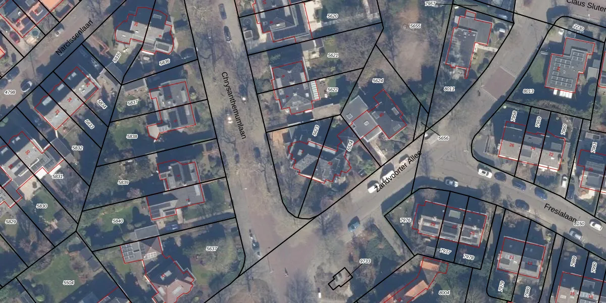 Het perceel waarop Chrysanthemumlaan 2 staat heeft een oppervlakte van 400 m². Dit is een groot perceel. De perceeloppervlakte wordt geregistreerd door het Kadaster. Gedetailleerde informatie over de maten van dit perceel kunt u vinden in het rapport Kadastrale kaart met maatvoering van Chrysanthemumlaan 2.