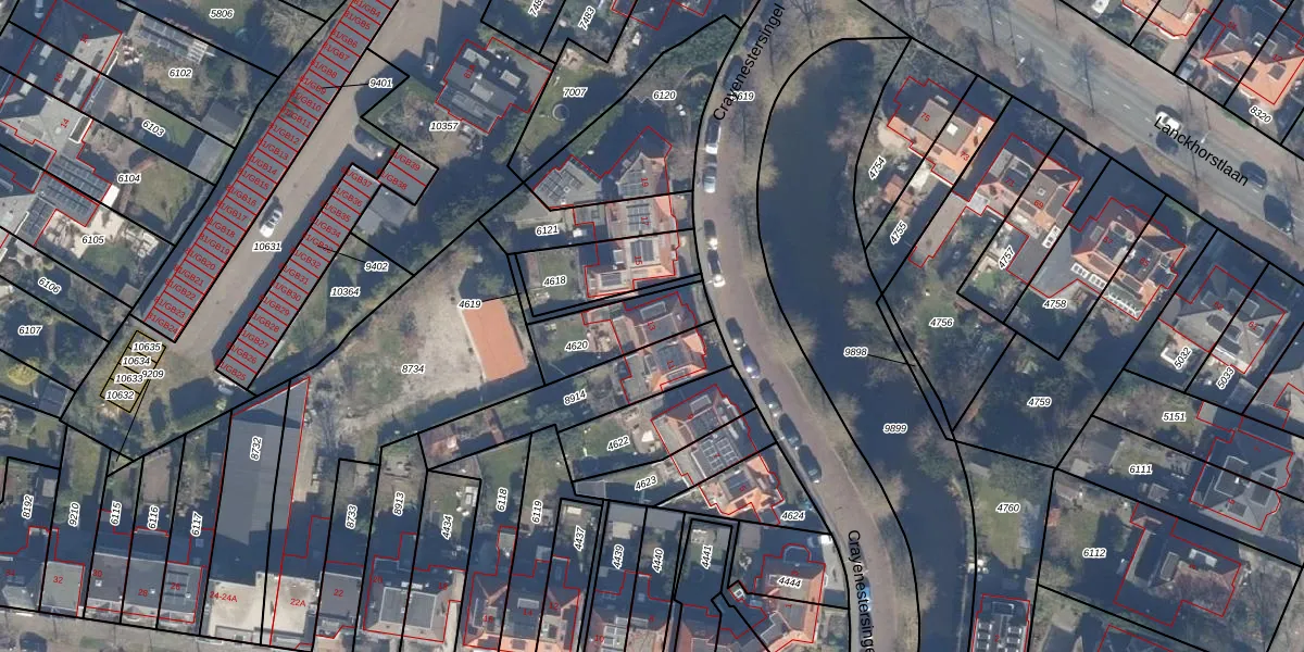 Gebruik de zoekbalk of klik op een perceel voor informatie over de adressen binnen dit perceel.