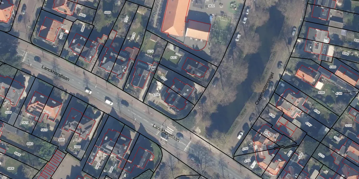 Gebruik de zoekbalk of klik op een perceel voor informatie over de adressen binnen dit perceel.