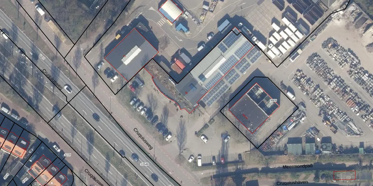 Het perceel waarop Cruquiusweg 49 staat heeft een oppervlakte van 9,6 ha. Dit is een zeer groot perceel. De perceeloppervlakte wordt geregistreerd door het Kadaster. Gedetailleerde informatie over de maten van dit perceel kunt u vinden in het rapport Kadastrale kaart met maatvoering van Cruquiusweg 49.