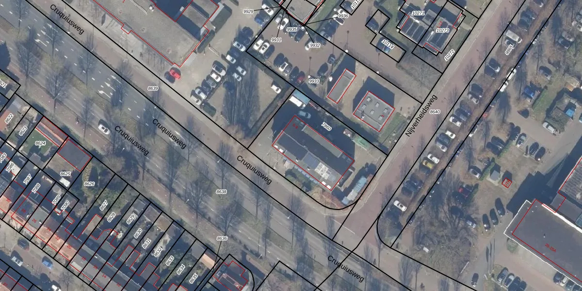 Het perceel waarop Cruquiusweg 7 staat heeft een oppervlakte van 1083 m². Dit is een zeer groot perceel. De perceeloppervlakte wordt geregistreerd door het Kadaster. Gedetailleerde informatie over de maten van dit perceel kunt u vinden in het rapport Kadastrale kaart met maatvoering van Cruquiusweg 7.