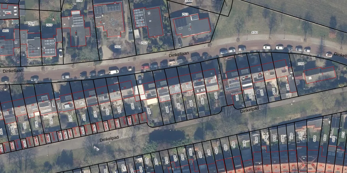 Dinkellaan 23 is gelegen op kadastraal perceel HSD01B7897. Deze kadastrale aanduiding is uniek en wordt gebruikt door het Kadaster om eigendomsrechten en andere zakelijke rechten vast te leggen. Het perceel maakt onderdeel uit van de kadastrale gemeente Heemstede.