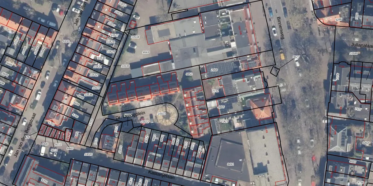 Dr. Droogplein 8 is gelegen op kadastraal perceel HSD01A9852. Deze kadastrale aanduiding is uniek en wordt gebruikt door het Kadaster om eigendomsrechten en andere zakelijke rechten vast te leggen. Het perceel maakt onderdeel uit van de kadastrale gemeente Heemstede.