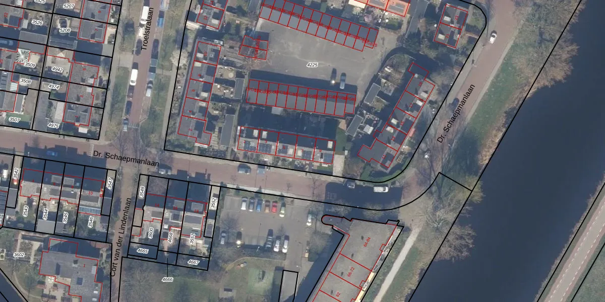 Het perceel waarop Dr. Schaepmanlaan 7 staat heeft een oppervlakte van 6180 m². Dit is een zeer groot perceel. De perceeloppervlakte wordt geregistreerd door het Kadaster. Gedetailleerde informatie over de maten van dit perceel kunt u vinden in het rapport Kadastrale kaart met maatvoering van Dr. Schaepmanlaan 7.
