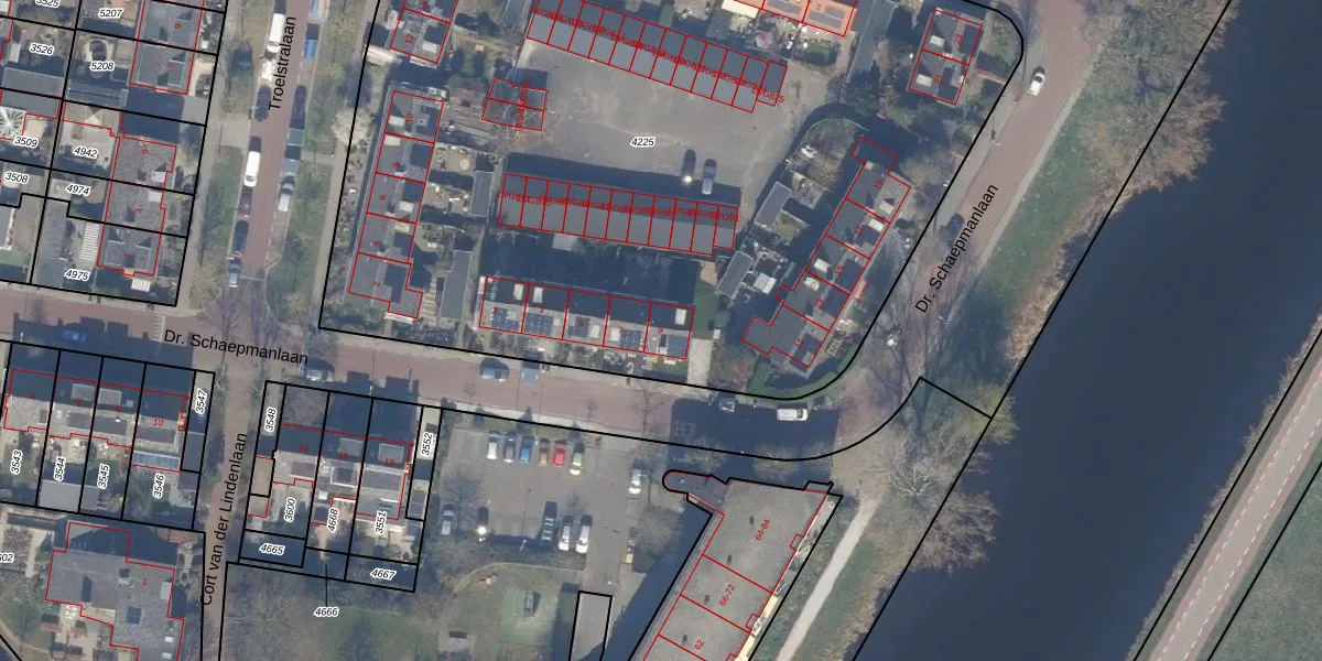 Het perceel waarop Dr. Schaepmanlaan 9 staat heeft een oppervlakte van 6180 m². Dit is een zeer groot perceel. De perceeloppervlakte wordt geregistreerd door het Kadaster. Gedetailleerde informatie over de maten van dit perceel kunt u vinden in het rapport Kadastrale kaart met maatvoering van Dr. Schaepmanlaan 9.