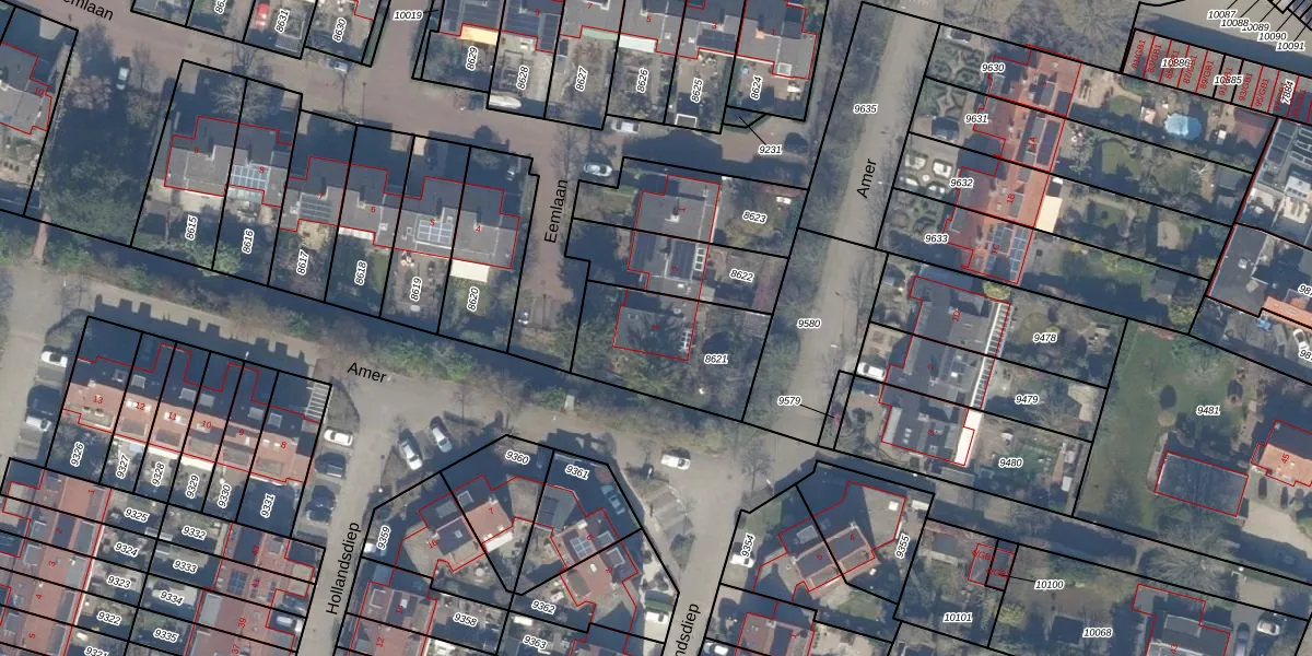 Gebruik de zoekbalk of klik op een perceel voor informatie over de adressen binnen dit perceel.