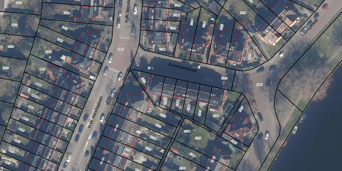 Gebruik de zoekbalk of klik op een perceel voor informatie over de adressen binnen dit perceel.