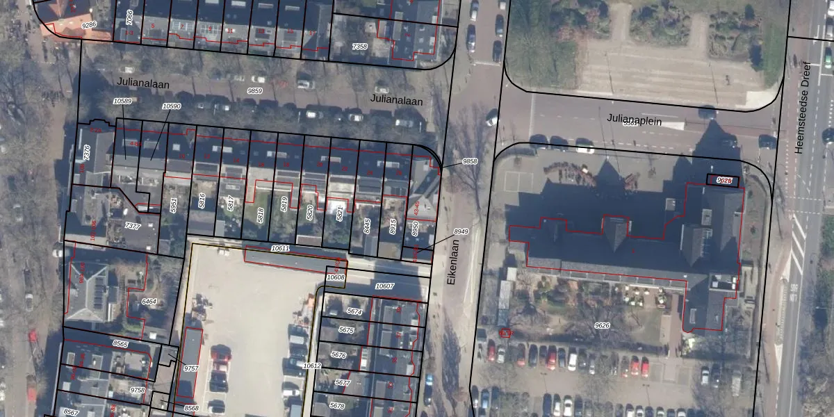 Het adres ligt op het perceel HSD01-A-8950, dat zich in de kadastrale gemeente Heemstede bevindt. De gemiddelde perceelgrootte in Heemstede is 916,75 m². Dit perceel is kleiner: de perceeloppervlakte bedraagt 168 m². Het kleinste perceel in de kadastrale gemeente is 0 m² groot. De grootste perceeloppervlakte is 67,9 ha. Er zijn 2 adressen aanwezig op het perceel. De huidige grenzen van het perceel zijn digitaal in de Basisregistratie Kadaster (BRK) geregistreerd op 05-09-2005.