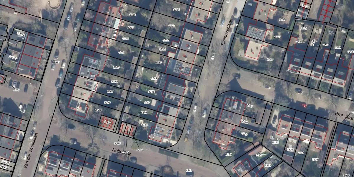 Einthovenlaan 9 is gelegen op kadastraal perceel HSD01B8249. Deze kadastrale aanduiding is uniek en wordt gebruikt door het Kadaster om eigendomsrechten en andere zakelijke rechten vast te leggen. Het perceel maakt onderdeel uit van de kadastrale gemeente Heemstede.