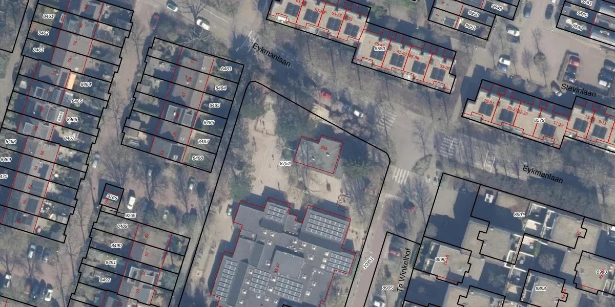 Eykmanlaan 39-A is gelegen op kadastraal perceel HSD01B8751. Deze kadastrale aanduiding is uniek en wordt gebruikt door het Kadaster om eigendomsrechten en andere zakelijke rechten vast te leggen. Het perceel maakt onderdeel uit van de kadastrale gemeente Heemstede.