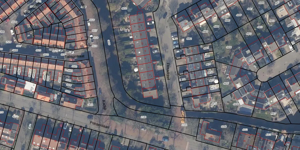 Het perceel waarop Floradreef 5 staat heeft een oppervlakte van 2966 m². Dit is een zeer groot perceel. De perceeloppervlakte wordt geregistreerd door het Kadaster. Gedetailleerde informatie over de maten van dit perceel kunt u vinden in het rapport Kadastrale kaart met maatvoering van Floradreef 5.
