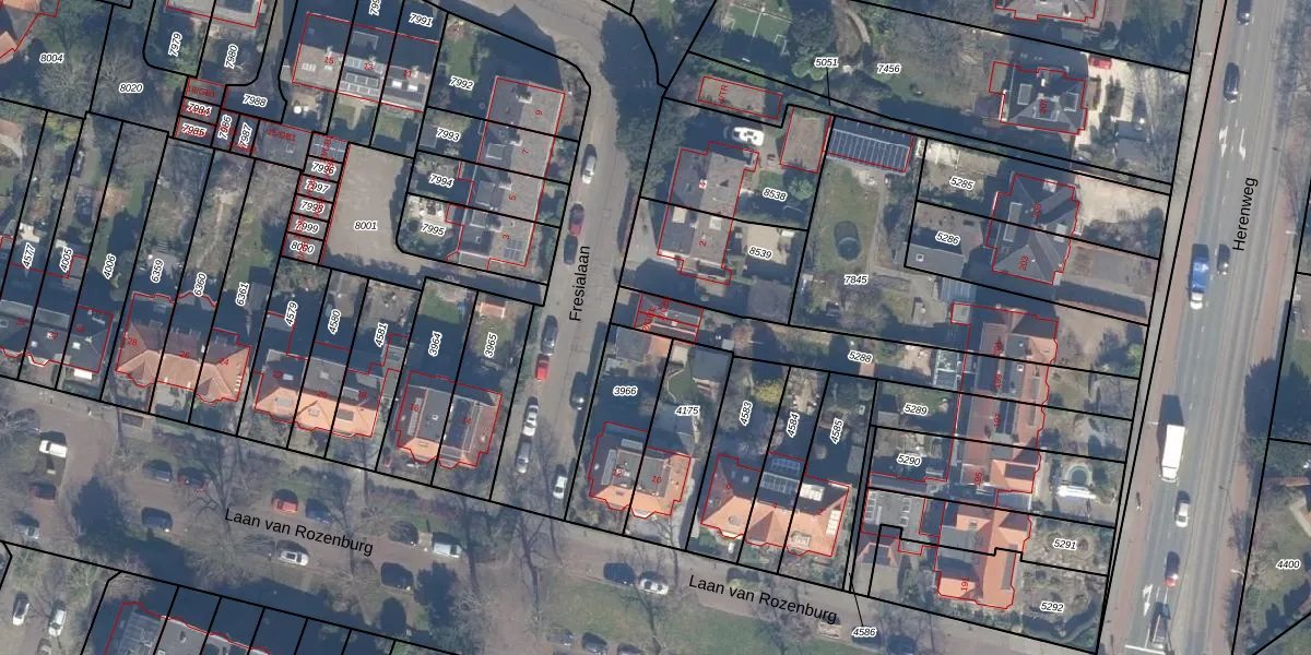 Het perceel waarop Fresialaan 2-GB1 staat heeft een oppervlakte van 520 m². Dit is een groot perceel. De perceeloppervlakte wordt geregistreerd door het Kadaster. Gedetailleerde informatie over de maten van dit perceel kunt u vinden in het rapport Kadastrale kaart met maatvoering van Fresialaan 2-GB1.