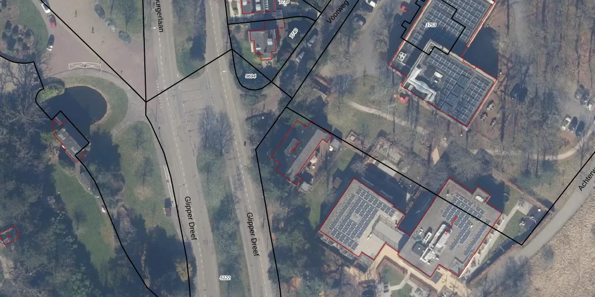 Het perceel waarop Glipper Dreef 240 staat heeft een oppervlakte van 5,1 ha. Dit is een zeer groot perceel. De perceeloppervlakte wordt geregistreerd door het Kadaster. Gedetailleerde informatie over de maten van dit perceel kunt u vinden in het rapport Kadastrale kaart met maatvoering van Glipper Dreef 240.