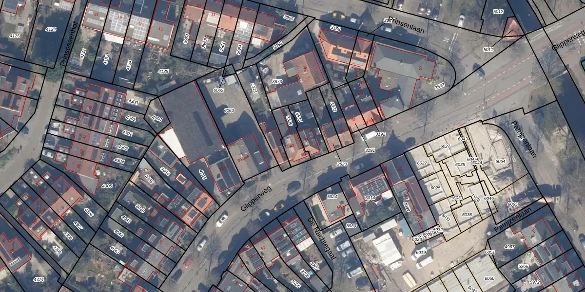 Gebruik de zoekbalk of klik op een perceel voor informatie over de adressen binnen dit perceel.