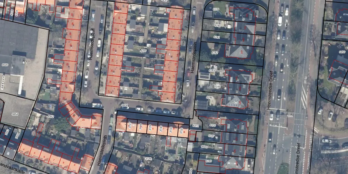 Het perceel waarop Haemstedeplein 11 staat heeft een oppervlakte van 2594 m². Dit is een zeer groot perceel. De perceeloppervlakte wordt geregistreerd door het Kadaster. Gedetailleerde informatie over de maten van dit perceel kunt u vinden in het rapport Kadastrale kaart met maatvoering van Haemstedeplein 11.