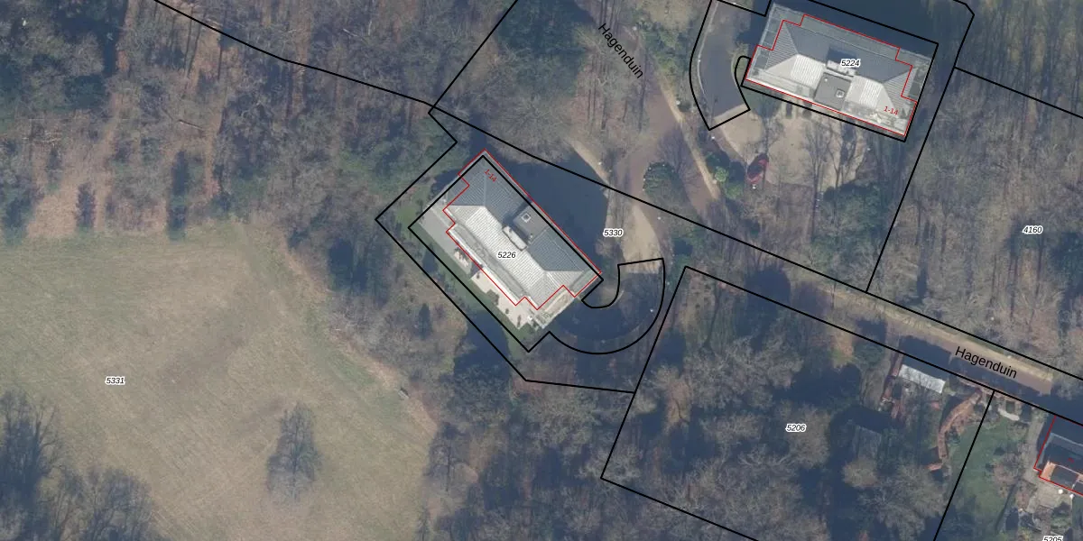 Het perceel waarop Hagenduin 13 staat heeft een oppervlakte van 810 m². Dit is een groot perceel. De perceeloppervlakte wordt geregistreerd door het Kadaster. Gedetailleerde informatie over de maten van dit perceel kunt u vinden in het rapport Kadastrale kaart met maatvoering van Hagenduin 13.