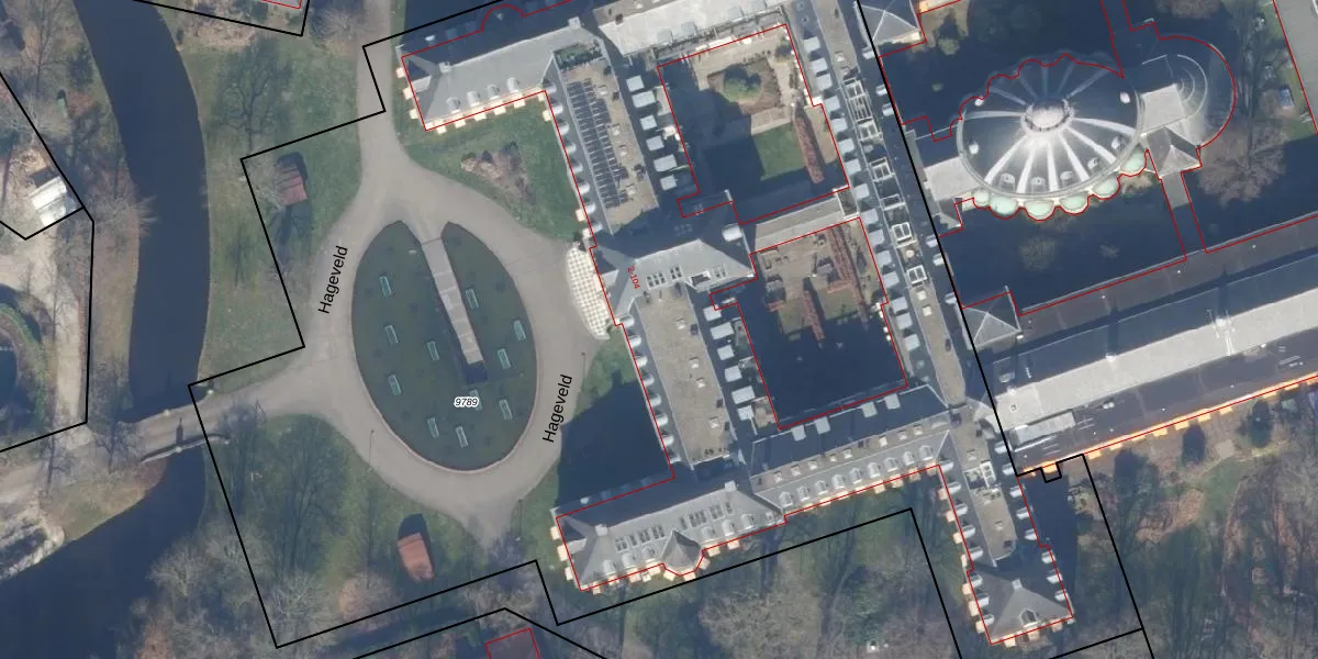 Het perceel waarop Hageveld 22 staat heeft een oppervlakte van 1,1 ha. Dit is een zeer groot perceel. De perceeloppervlakte wordt geregistreerd door het Kadaster. Gedetailleerde informatie over de maten van dit perceel kunt u vinden in het rapport Kadastrale kaart met maatvoering van Hageveld 22.