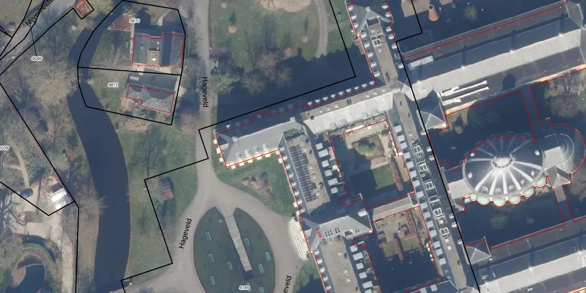 Het perceel waarop Hageveld 86 staat heeft een oppervlakte van 1,1 ha. Dit is een zeer groot perceel. De perceeloppervlakte wordt geregistreerd door het Kadaster. Gedetailleerde informatie over de maten van dit perceel kunt u vinden in het rapport Kadastrale kaart met maatvoering van Hageveld 86.