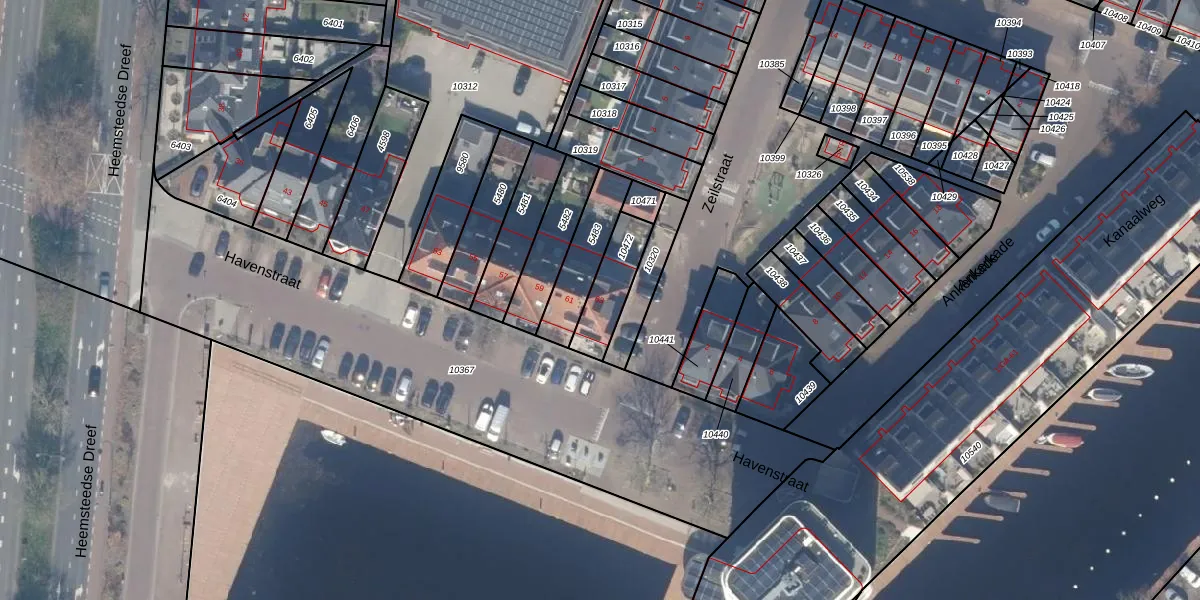 Havenstraat 63 is gelegen op kadastraal perceel HSD01A10472. Deze kadastrale aanduiding is uniek en wordt gebruikt door het Kadaster om eigendomsrechten en andere zakelijke rechten vast te leggen. Het perceel maakt onderdeel uit van de kadastrale gemeente Heemstede.