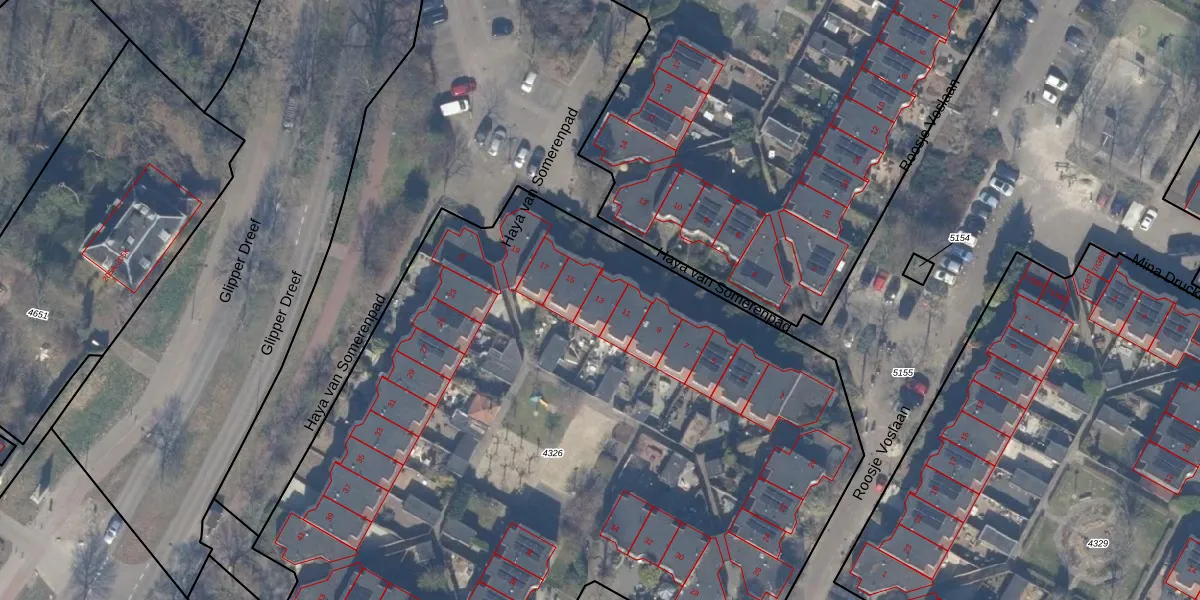 Het perceel waarop Haya van Somerenpad 13 staat heeft een oppervlakte van 5430 m². Dit is een zeer groot perceel. De perceeloppervlakte wordt geregistreerd door het Kadaster. Gedetailleerde informatie over de maten van dit perceel kunt u vinden in het rapport Kadastrale kaart met maatvoering van Haya van Somerenpad 13.