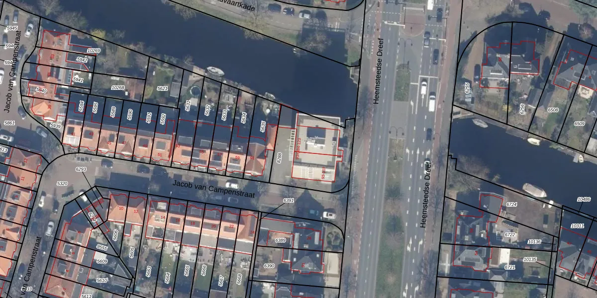 Het adres ligt op het perceel HSD01-A-8288, dat zich in de kadastrale gemeente Heemstede bevindt. Het perceel is 636 m² groot. Dat is kleiner dan de gemiddelde perceeloppervlakte in Heemstede, dat op 916,75 m² ligt. Het kleinste perceel in de kadastrale gemeente is 0 m² groot. De grootste perceeloppervlakte is 67,9 ha. Er zijn 23 adressen aanwezig op het perceel. De huidige grenzen van het perceel zijn digitaal in de Basisregistratie Kadaster (BRK) geregistreerd op 06-04-2017.