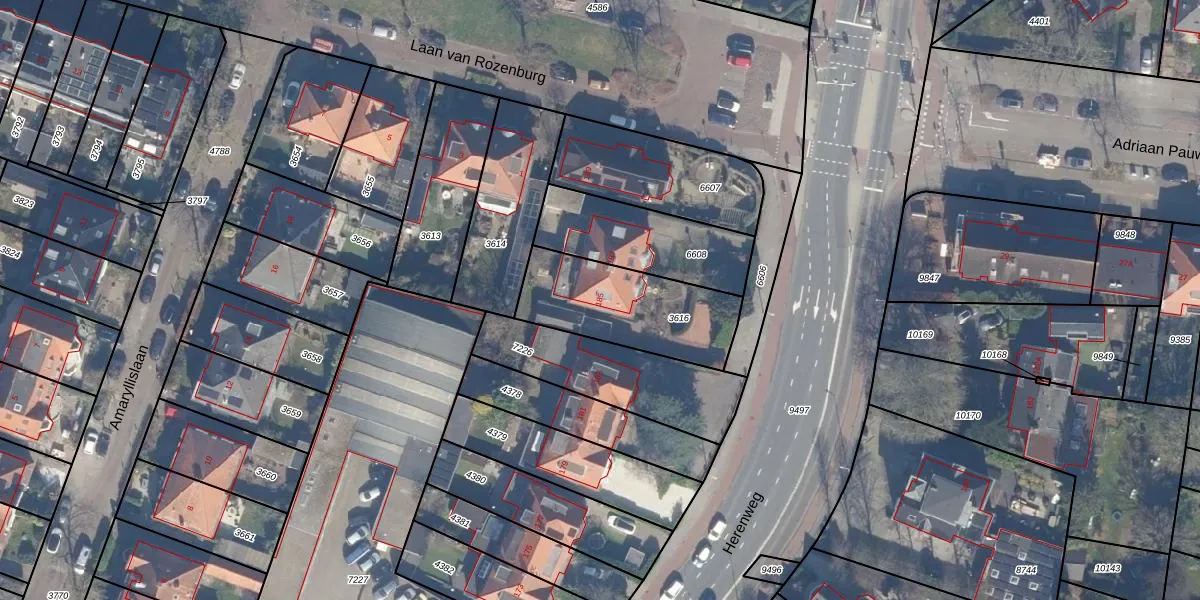Herenweg 185 is gelegen op kadastraal perceel HSD01B3616. Deze kadastrale aanduiding is uniek en wordt gebruikt door het Kadaster om eigendomsrechten en andere zakelijke rechten vast te leggen. Het perceel maakt onderdeel uit van de kadastrale gemeente Heemstede.