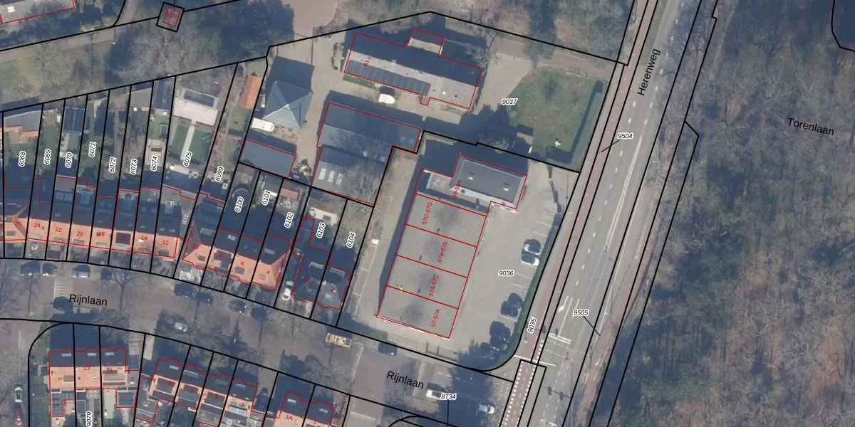 Herenweg 57-F is gelegen op kadastraal perceel HSD01B9036. Deze kadastrale aanduiding is uniek en wordt gebruikt door het Kadaster om eigendomsrechten en andere zakelijke rechten vast te leggen. Het perceel maakt onderdeel uit van de kadastrale gemeente Heemstede.