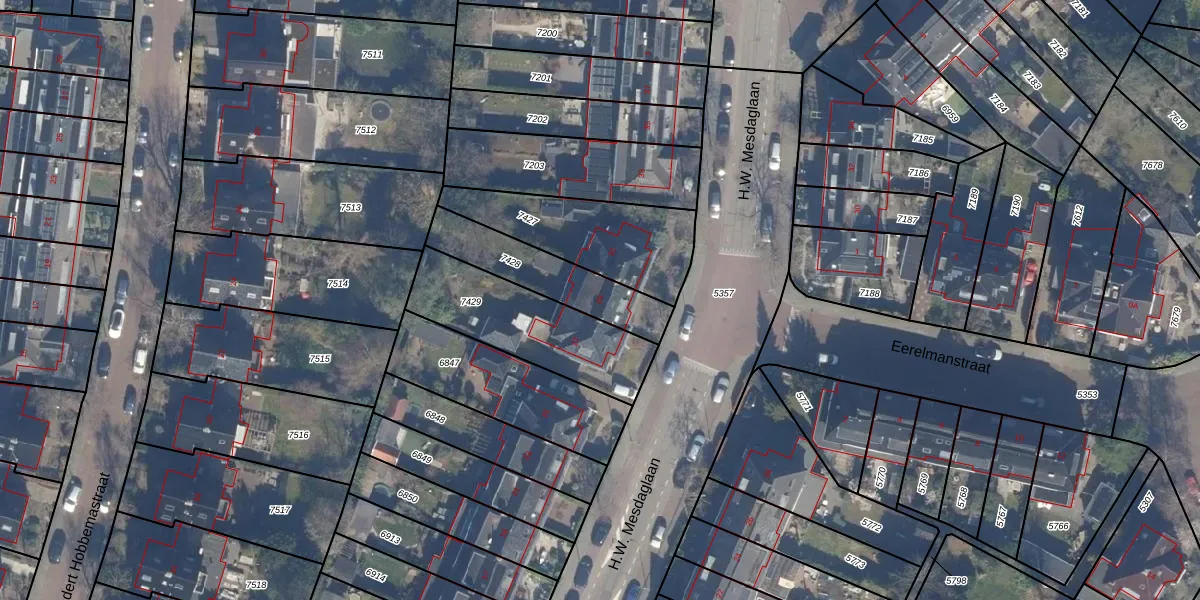 Gebruik de zoekbalk of klik op een perceel voor informatie over de adressen binnen dit perceel.