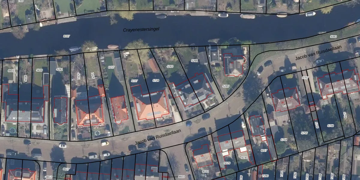 Het perceel waarop Jacob van Ruisdaellaan 29 staat heeft een oppervlakte van 520 m². Dit is een groot perceel. De perceeloppervlakte wordt geregistreerd door het Kadaster. Gedetailleerde informatie over de maten van dit perceel kunt u vinden in het rapport Kadastrale kaart met maatvoering van Jacob van Ruisdaellaan 29.