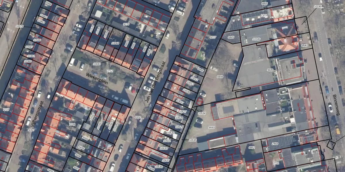 Het perceel waarop Jan van den Bergstraat 21 staat heeft een oppervlakte van 95 m². Dit is een klein perceel. De perceeloppervlakte wordt geregistreerd door het Kadaster. Gedetailleerde informatie over de maten van dit perceel kunt u vinden in het rapport Kadastrale kaart met maatvoering van Jan van den Bergstraat 21.