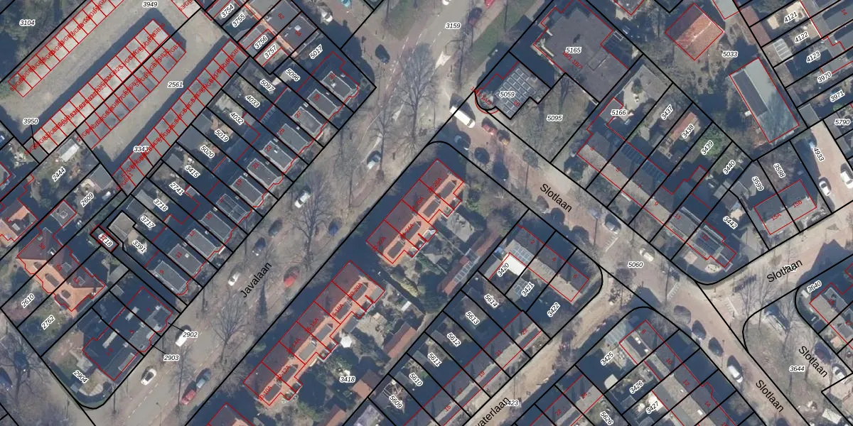 Het perceel waarop Javalaan 26-A staat heeft een oppervlakte van 3025 m². Dit is een zeer groot perceel. De perceeloppervlakte wordt geregistreerd door het Kadaster. Gedetailleerde informatie over de maten van dit perceel kunt u vinden in het rapport Kadastrale kaart met maatvoering van Javalaan 26-A.