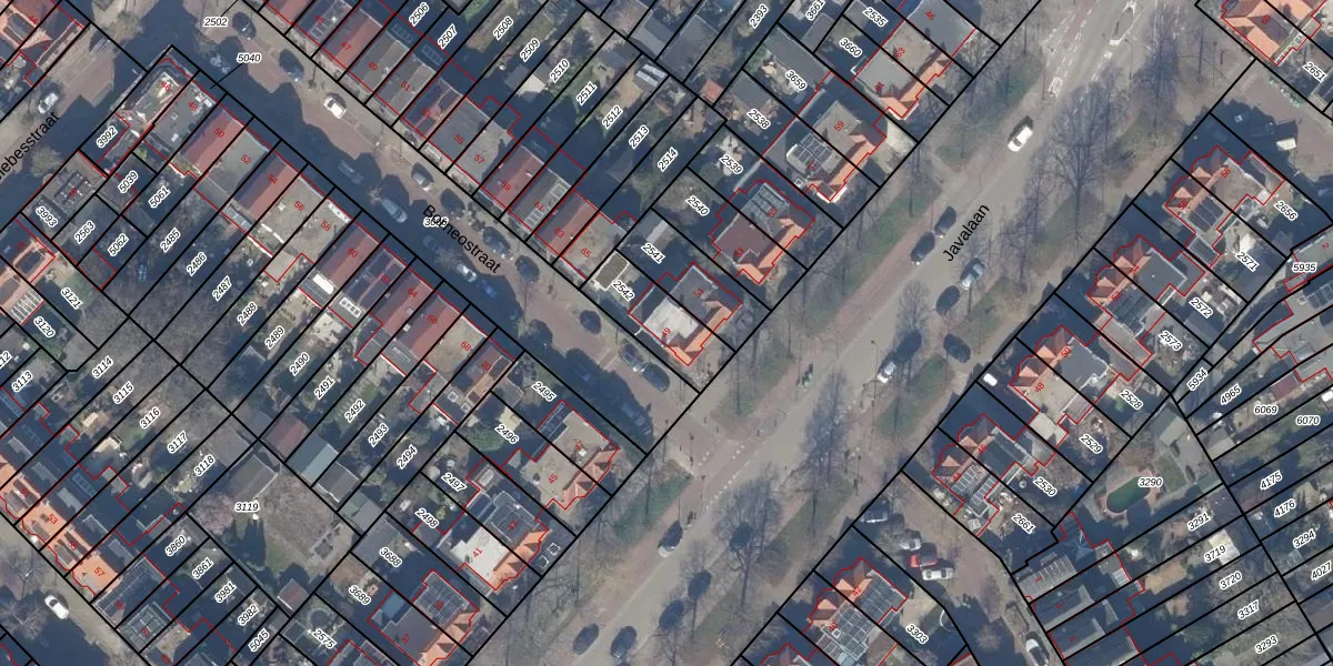 Het perceel waarop Javalaan 49 staat heeft een oppervlakte van 197 m². Dit is een middelgroot perceel. De perceeloppervlakte wordt geregistreerd door het Kadaster. Gedetailleerde informatie over de maten van dit perceel kunt u vinden in het rapport Kadastrale kaart met maatvoering van Javalaan 49.