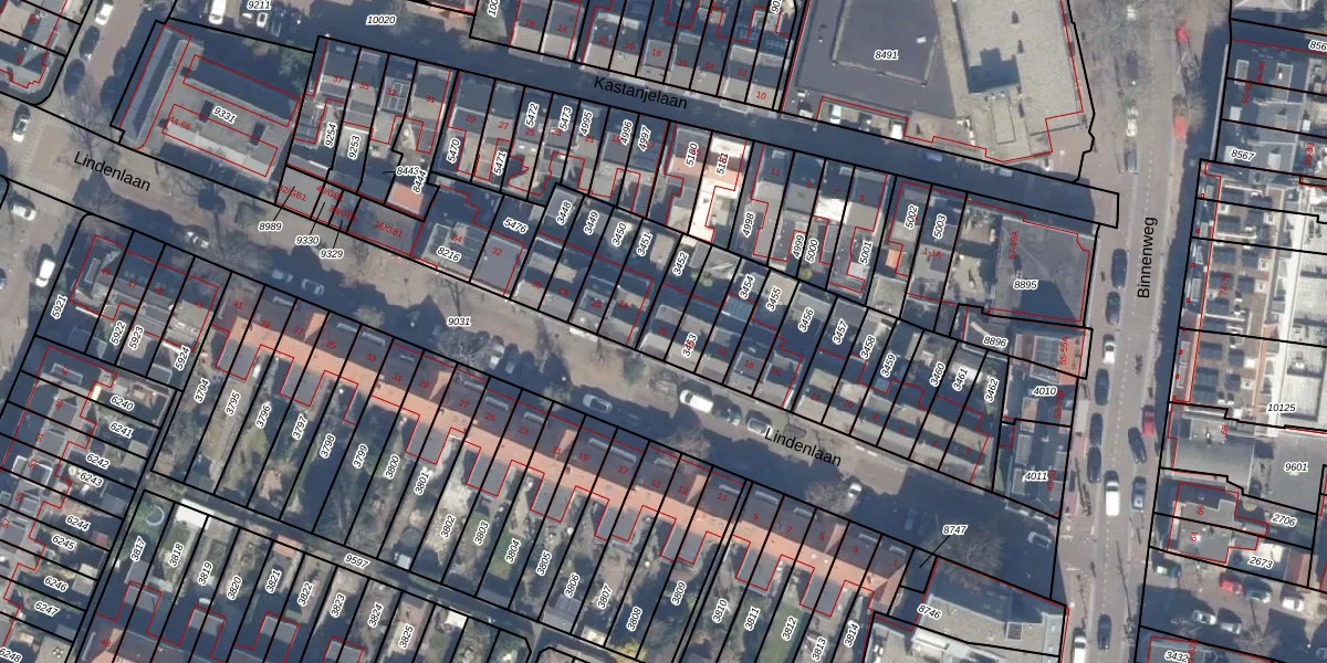 Het perceel waarop Lindenlaan 22 staat heeft een oppervlakte van 90 m². Dit is een klein perceel. De perceeloppervlakte wordt geregistreerd door het Kadaster. Gedetailleerde informatie over de maten van dit perceel kunt u vinden in het rapport Kadastrale kaart met maatvoering van Lindenlaan 22.