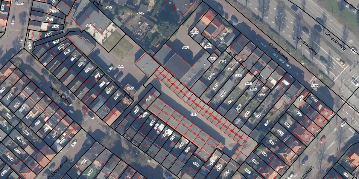 Het perceel waarop Lombokstraat 21-GB6 staat heeft een oppervlakte van 1456 m². Dit is een zeer groot perceel. De perceeloppervlakte wordt geregistreerd door het Kadaster. Gedetailleerde informatie over de maten van dit perceel kunt u vinden in het rapport Kadastrale kaart met maatvoering van Lombokstraat 21-GB6.