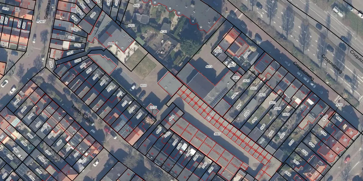 Lombokstraat 21-GB1 is gelegen op kadastraal perceel HSD01C3967. Deze kadastrale aanduiding is uniek en wordt gebruikt door het Kadaster om eigendomsrechten en andere zakelijke rechten vast te leggen. Het perceel maakt onderdeel uit van de kadastrale gemeente Heemstede.