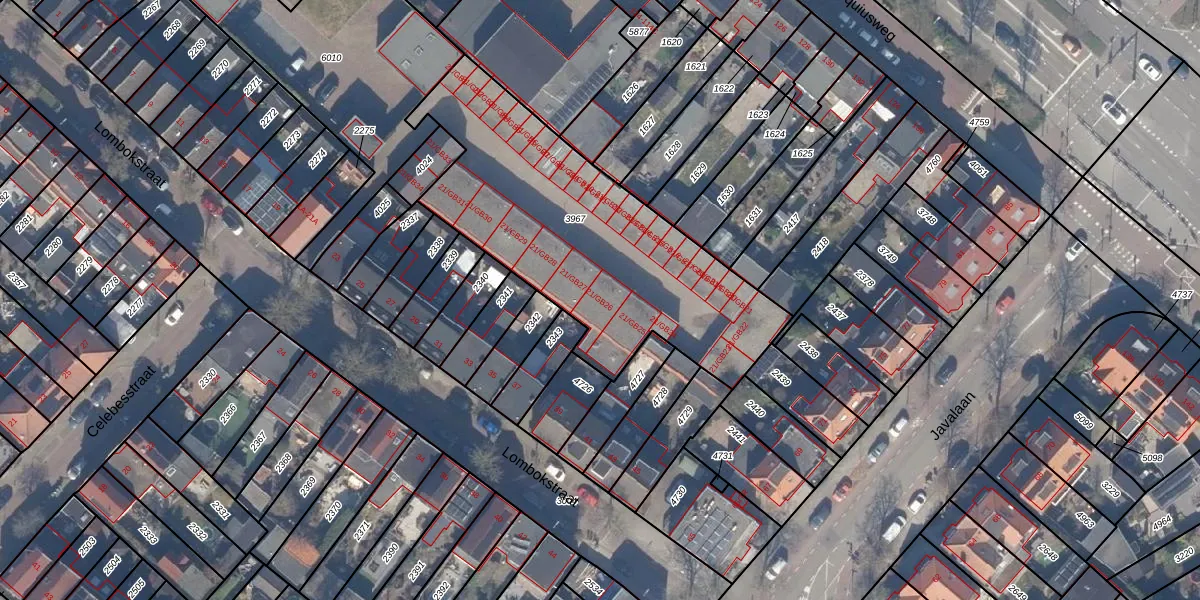 Het perceel waarop Lombokstraat 21-GB26 staat heeft een oppervlakte van 1456 m². Dit is een zeer groot perceel. De perceeloppervlakte wordt geregistreerd door het Kadaster. Gedetailleerde informatie over de maten van dit perceel kunt u vinden in het rapport Kadastrale kaart met maatvoering van Lombokstraat 21-GB26.