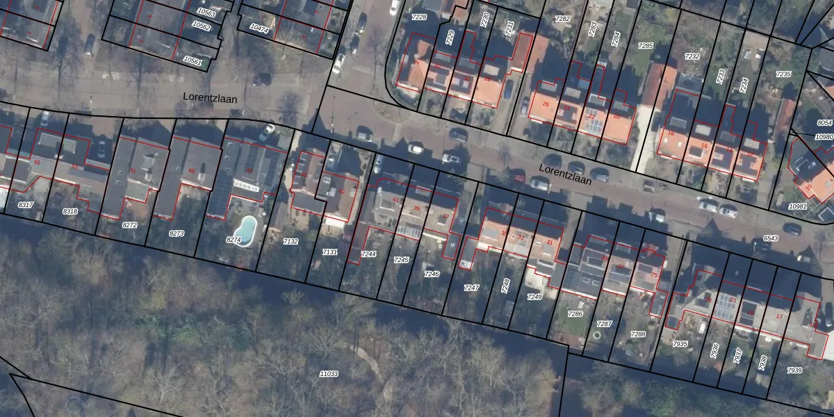 Lorentzlaan 39 is gelegen op kadastraal perceel HSD01B7245. Deze kadastrale aanduiding is uniek en wordt gebruikt door het Kadaster om eigendomsrechten en andere zakelijke rechten vast te leggen. Het perceel maakt onderdeel uit van de kadastrale gemeente Heemstede.