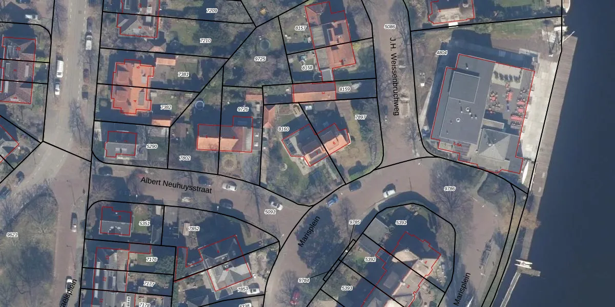Gebruik de zoekbalk of klik op een perceel voor informatie over de adressen binnen dit perceel.