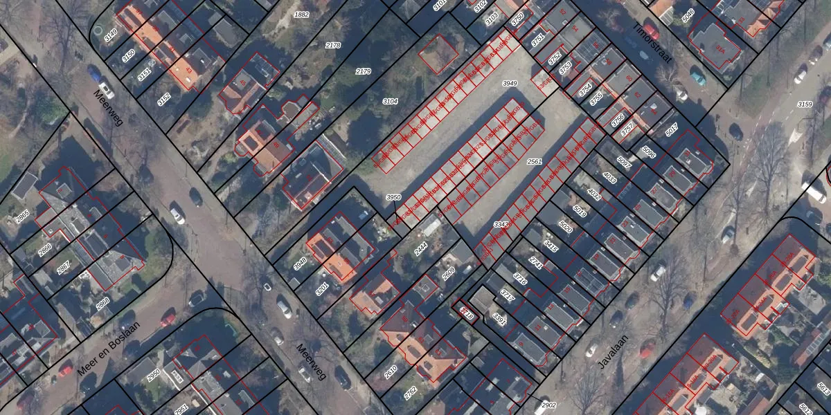 Het perceel waarop Meerweg 53-GB18 staat heeft een oppervlakte van 1127 m². Dit is een zeer groot perceel. De perceeloppervlakte wordt geregistreerd door het Kadaster. Gedetailleerde informatie over de maten van dit perceel kunt u vinden in het rapport Kadastrale kaart met maatvoering van Meerweg 53-GB18.