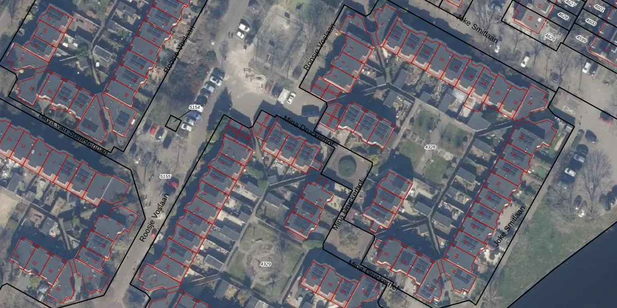 Het perceel waarop Mina Druckerhof 6 staat heeft een oppervlakte van 5125 m². Dit is een zeer groot perceel. De perceeloppervlakte wordt geregistreerd door het Kadaster. Gedetailleerde informatie over de maten van dit perceel kunt u vinden in het rapport Kadastrale kaart met maatvoering van Mina Druckerhof 6.
