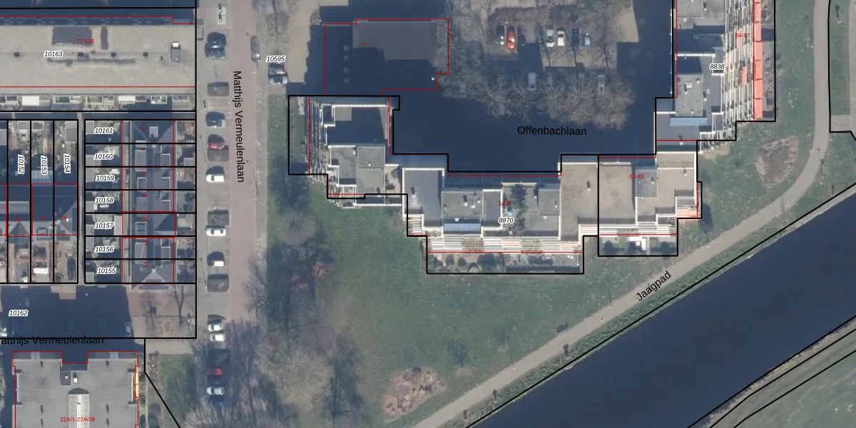 Het perceel waarop Offenbachlaan 32 staat heeft een oppervlakte van 1639 m². Dit is een zeer groot perceel. De perceeloppervlakte wordt geregistreerd door het Kadaster. Gedetailleerde informatie over de maten van dit perceel kunt u vinden in het rapport Kadastrale kaart met maatvoering van Offenbachlaan 32.