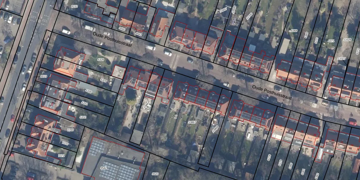 Het perceel waarop Oude Posthuisstraat 14 staat heeft een oppervlakte van 3491 m². Dit is een zeer groot perceel. De perceeloppervlakte wordt geregistreerd door het Kadaster. Gedetailleerde informatie over de maten van dit perceel kunt u vinden in het rapport Kadastrale kaart met maatvoering van Oude Posthuisstraat 14.