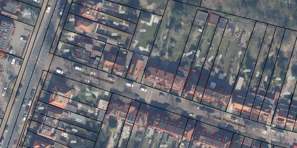 Het perceel waarop Oude Posthuisstraat 7 staat heeft een oppervlakte van 2955 m². Dit is een zeer groot perceel. De perceeloppervlakte wordt geregistreerd door het Kadaster. Gedetailleerde informatie over de maten van dit perceel kunt u vinden in het rapport Kadastrale kaart met maatvoering van Oude Posthuisstraat 7.