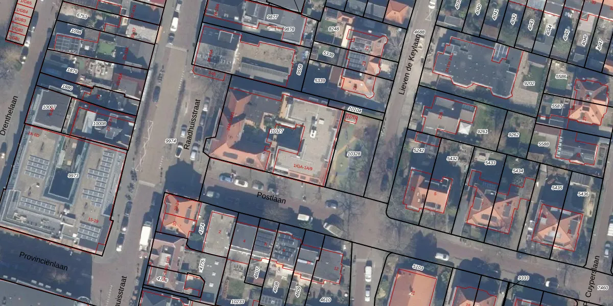 Het perceel waarop Postlaan 1-A-4 staat heeft een oppervlakte van 1072 m². Dit is een zeer groot perceel. De perceeloppervlakte wordt geregistreerd door het Kadaster. Gedetailleerde informatie over de maten van dit perceel kunt u vinden in het rapport Kadastrale kaart met maatvoering van Postlaan 1-A-4.