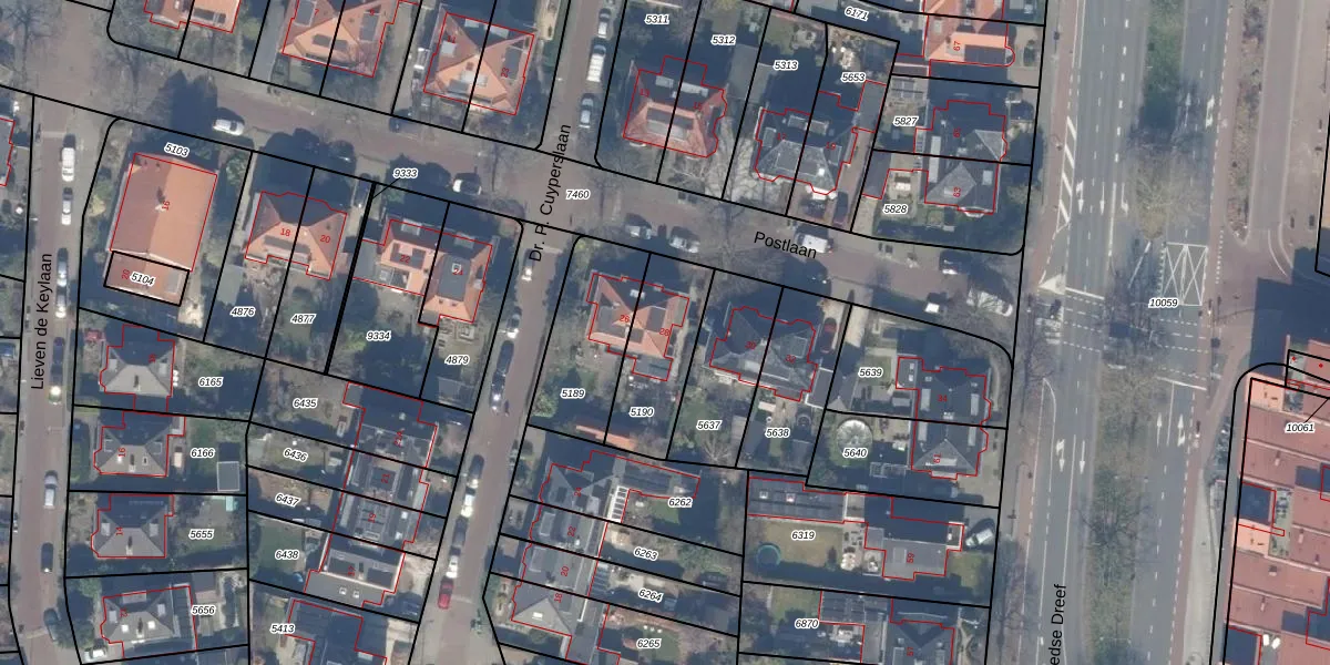 Gebruik de zoekbalk of klik op een perceel voor informatie over de adressen binnen dit perceel.