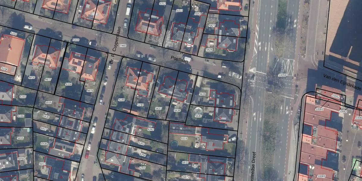 Gebruik de zoekbalk of klik op een perceel voor informatie over de adressen binnen dit perceel.