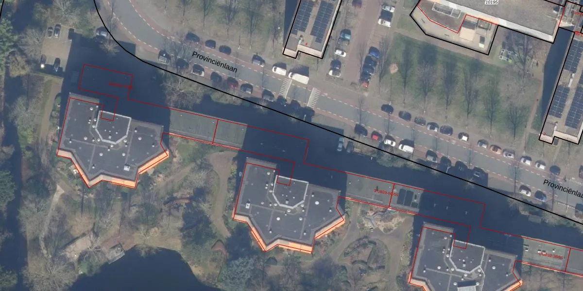 Het perceel waarop Provinciënlaan 5-GB37 staat heeft een oppervlakte van 2,1 ha. Dit is een zeer groot perceel. De perceeloppervlakte wordt geregistreerd door het Kadaster. Gedetailleerde informatie over de maten van dit perceel kunt u vinden in het rapport Kadastrale kaart met maatvoering van Provinciënlaan 5-GB37.