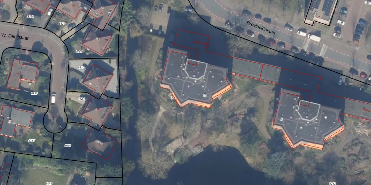 Het perceel waarop Provinciƫnlaan 7-D-43 staat heeft een oppervlakte van 2,1 ha. Dit is een zeer groot perceel. De perceeloppervlakte wordt geregistreerd door het Kadaster. Gedetailleerde informatie over de maten van dit perceel kunt u vinden in het rapport Kadastrale kaart met maatvoering van Provinciƫnlaan 7-D-43.