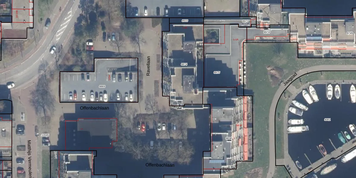 Het perceel waarop Ravellaan 8 staat heeft een oppervlakte van 1019 m². Dit is een zeer groot perceel. De perceeloppervlakte wordt geregistreerd door het Kadaster. Gedetailleerde informatie over de maten van dit perceel kunt u vinden in het rapport Kadastrale kaart met maatvoering van Ravellaan 8.